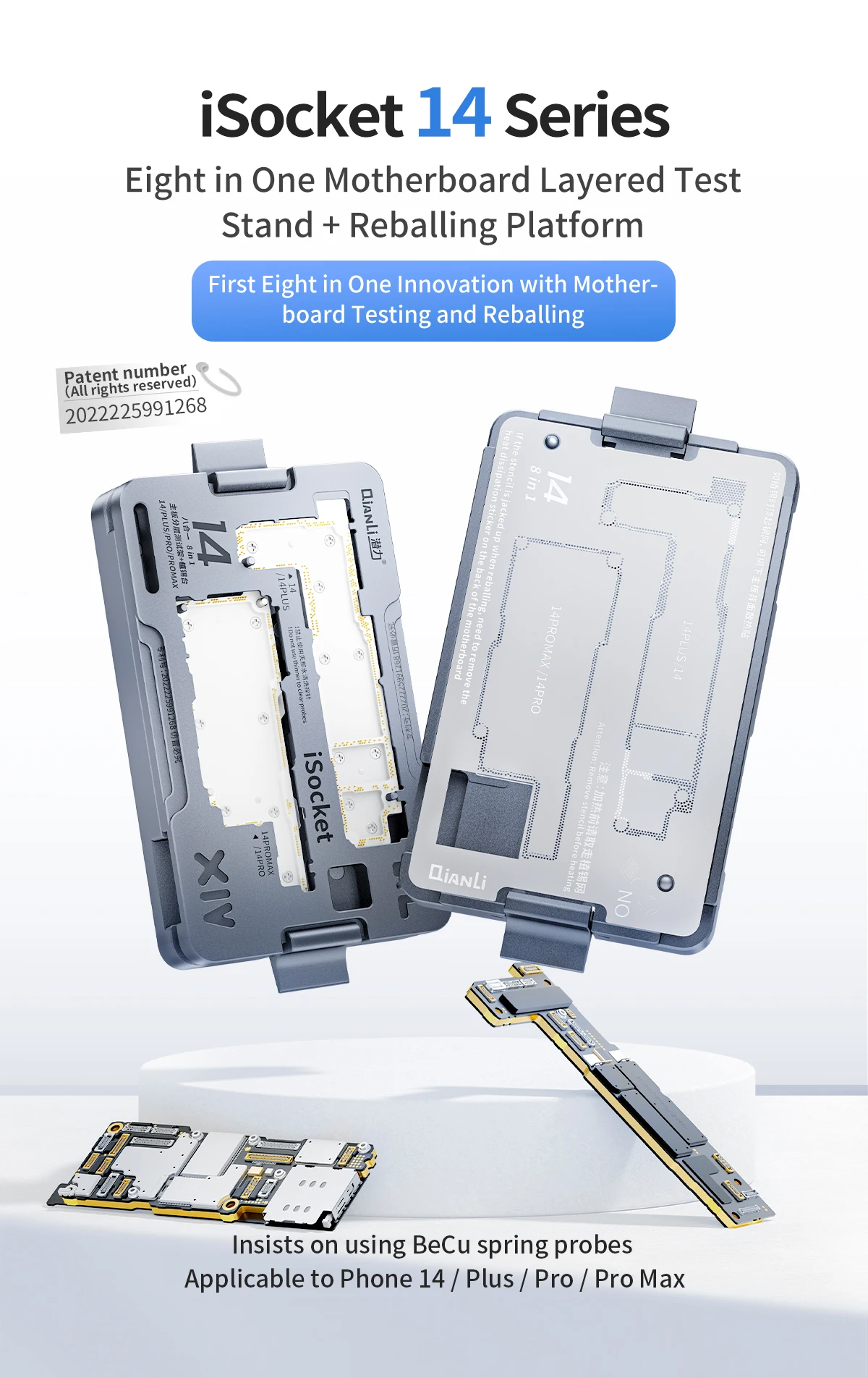 IPhone X 11 12 13 14 serisi için QianLi iSocket iPhone anakart test fikstürü. IPhone X-14 Pro Max mantık kurulu fonksiyonu algılama için Qianli iSocket testi jig.